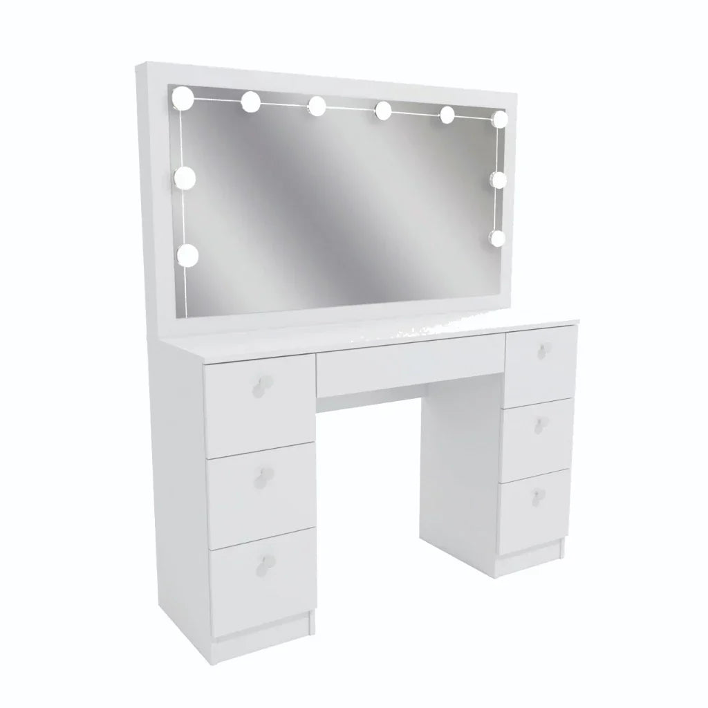 Diferente das penteadeiras comuns, este modelo oferece Máxima Capacidade de Organização e um sistema de iluminação que garante a maquiagem perfeita, sem sombras indesejadas.